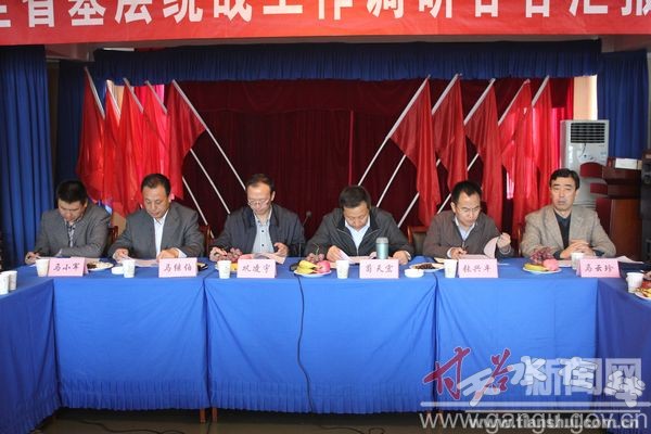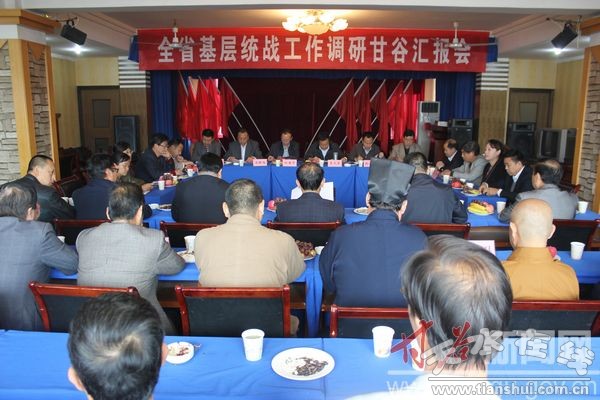 在召開(kāi)的匯報(bào)會(huì)上,省委統(tǒng)戰(zhàn)部副巡視員茍?zhí)旌曜髁酥匾v話,市委統(tǒng)戰(zhàn)部副部長(zhǎng)馬繼伯主持會(huì)議,縣委書(shū)記賈忠慧就存在的困難和問(wèn)題進(jìn)行了匯報(bào)并作了表態(tài)發(fā)言,縣委常委、統(tǒng)戰(zhàn)部長(zhǎng)馬驥就近年來(lái)甘谷縣統(tǒng)戰(zhàn)工作進(jìn)行了全面匯報(bào),黨外知識(shí)分子代表、非黨經(jīng)濟(jì)人士代表、民盟甘谷總支、宗教協(xié)會(huì)負(fù)責(zé)人結(jié)合各自工作作了發(fā)言。