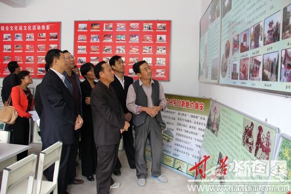 王欽錫一行先后深入甘谷縣磐安鎮(zhèn)文化站、毛家坪遺址、毛家坪農(nóng)家書屋、大像山文化主題公園、大像山鎮(zhèn)文化站、縣圖書館、縣博物館、冀城廣場、六峰鎮(zhèn)新農(nóng)村及南濱河路等建設(shè)現(xiàn)場,通過實地查看、詢問了解等方式,全面詳細了解了甘谷縣農(nóng)村文化陣地建設(shè)情況。