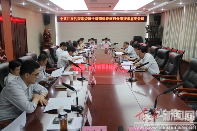 6月5日,甘谷縣召開縣委常委班子對(duì)照檢查材料分組征求意見會(huì),就縣委常委班子群眾路線教育實(shí)踐活動(dòng)對(duì)照檢查材料分別征求縣委委員、候補(bǔ)委員及各鄉(xiāng)鎮(zhèn)、各部門、各單位的意見建議?h委副書記李尚平,縣委常委孟曉龍、李曉東、張發(fā)茂分別主持會(huì)議。