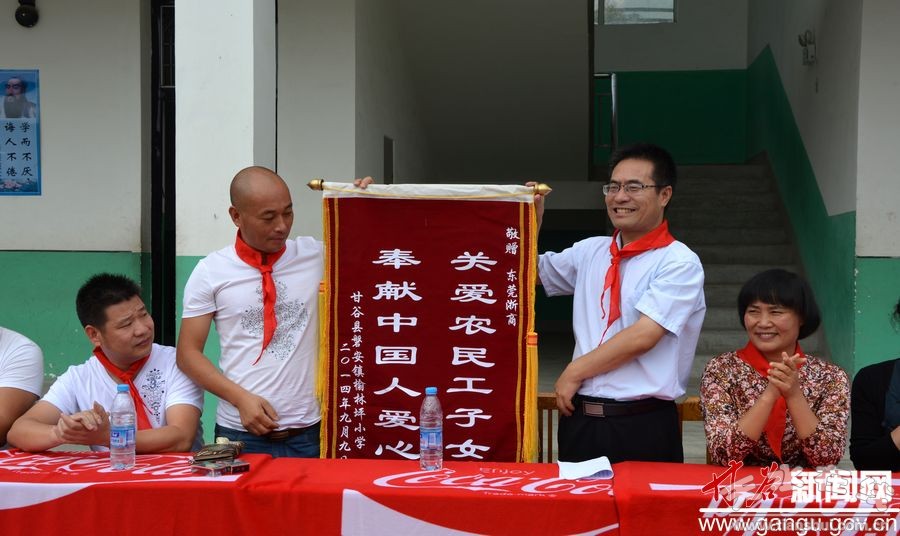 當(dāng)天,東莞浙江愛(ài)心團(tuán)隊(duì)向榆林坪小學(xué)20名農(nóng)民工子女和貧困學(xué)生每人捐贈(zèng)助學(xué)金300元,為150名同學(xué)贈(zèng)送了價(jià)值1.5萬(wàn)多元的學(xué)習(xí)用品;李曉東為東莞浙商愛(ài)心團(tuán)隊(duì)贈(zèng)送了錦旗。