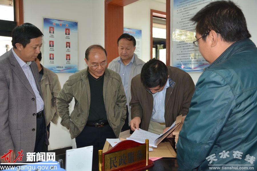 調(diào)研組一行先后深入磐安鎮(zhèn)政務(wù)服務(wù)大廳、縣殯葬管理所、縣政務(wù)服務(wù)中心等地,通過實地查看、查閱資料、聽取匯報等方式,對甘谷縣婚姻登記管理、殯葬管理等情況進行了全面調(diào)研。