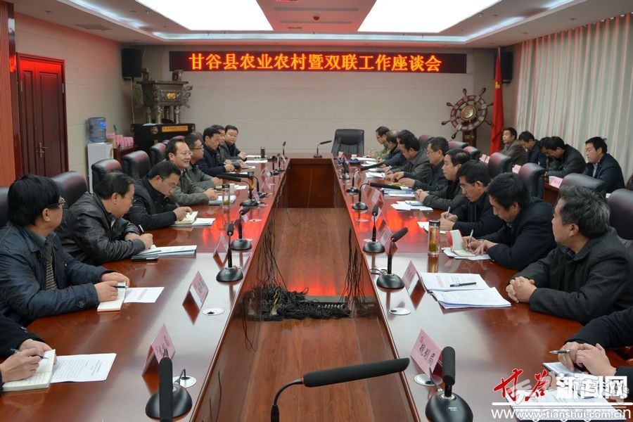 12月11日,甘谷縣召開農(nóng)業(yè)農(nóng)村暨雙聯(lián)工作座談會,縣委副書記武建成,副縣長王龍強(qiáng)出席會議,各鄉(xiāng)鎮(zhèn)、涉農(nóng)各部門主要負(fù)責(zé)人參加會議。