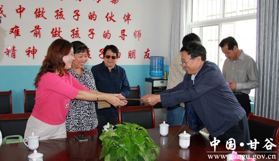 9月9日,在第31個教師節(jié)來臨之際,甘谷縣委副書記、縣長申君明帶領(lǐng)縣政府辦、教體局負(fù)責(zé)人來到甘谷一中、柳湖小學(xué)、模范中學(xué)、縣二幼、縣職校等地,看望慰問優(yōu)秀教師、困難教師和離退休老教師,給他們送去了慰問金,并通過他們向辛勤耕耘在教育戰(zhàn)線的廣大教師和教育工作者致以節(jié)日的祝賀和親切的問候。縣人大副主任韓金鼎陪同慰問。