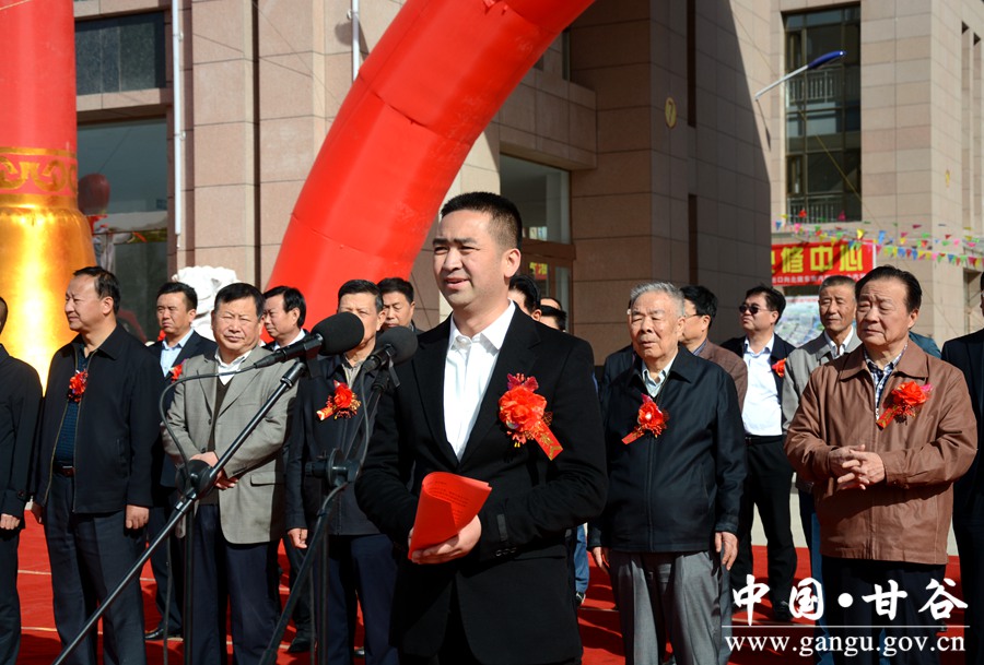 開業(yè)儀式上,甘肅省軍區(qū)原副司令員張臣剛少將講話,副縣長牛武軍致辭,甘肅弘宇集團(tuán)董事長宋弘宇介紹項(xiàng)目建設(shè)情況,客商代表天合汽車集團(tuán)董事長發(fā)言。