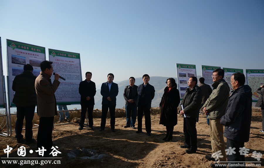 11月29日,國(guó)土資源部財(cái)務(wù)司副司長(zhǎng)劉鍵、北京林業(yè)大學(xué)教授王秀茹帶領(lǐng)檢查評(píng)估組,來甘谷縣就甘肅東部百萬畝土地整治重大工程天水片區(qū)甘谷項(xiàng)目實(shí)施情況進(jìn)行檢查評(píng)估。甘肅省國(guó)土資源廳副巡視員成文輝,天水市政府副秘書長(zhǎng)、市督查室主任楊勝利,天水市國(guó)土資源局局長(zhǎng)唐宏偉,甘谷縣委副書記、縣長(zhǎng)申君明,縣委常委、常務(wù)副縣長(zhǎng)孟曉龍及縣國(guó)土資源局負(fù)責(zé)人陪同。