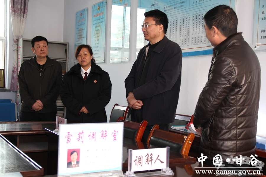 近日,甘肅省高級人民法院政治部主任趙立新一行深入甘谷縣調研法院工作。天水市中院常務副院長王勇謀、市中院政治部主任麻小梅、甘谷縣法院院長余翔陪同調研。