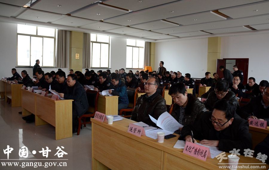 1月20日,甘谷縣召開2016年道交委第一次會議暨春節(jié)道路交通安全工作會議?h委常委、政法委書記張發(fā)茂,縣人大常委會副主任謝興明,縣政協(xié)副主席陳旭出席會議,縣道交委成員單位、各鄉(xiāng)鎮(zhèn)交通安全管理員及客運企業(yè)負責人參加會議。