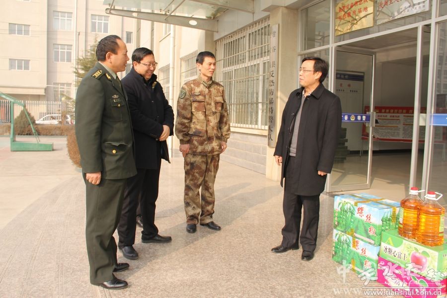 1月29日,甘谷縣委常委、副縣長(zhǎng)邵宏偉,縣委常委、人武部部長(zhǎng)田暉,縣政協(xié)副主席陳旭來(lái)到縣人武部、預(yù)備役旅、武警中隊(duì)等地,看望慰問(wèn)廣大軍警官兵,為他們送去了慰問(wèn)品和新春的祝福,把縣委、縣政府對(duì)子弟兵的溫暖關(guān)懷送到了官兵們的心坎上。