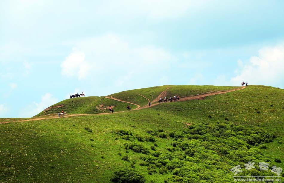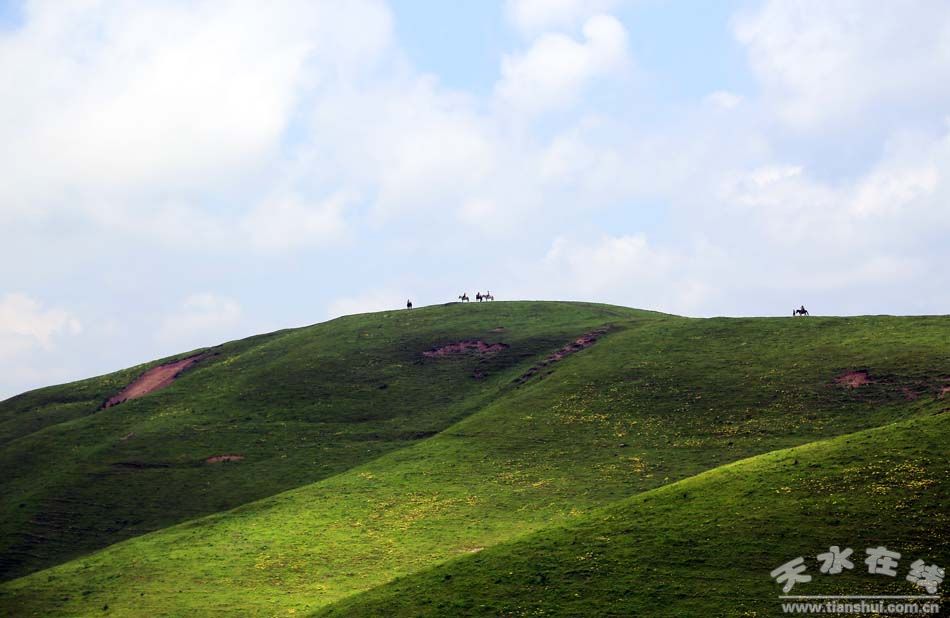 “藍藍的天上白云飄,白云下面馬兒跑……”還未動身,一曲優(yōu)美的歌曲首先映入腦海......車輪飛轉(zhuǎn),思緒已不自覺地飛向那山巒起伏、碧草連天的古坡草原。經(jīng)過二個多小時的車程,到了古坡草原,只見那藍天白云的映襯之下,眾多的游客們騎著馬在古坡的山頂上馳騁。曾經(jīng)養(yǎng)在深閨人未識的古坡,如今已名揚隴原,成了旅游的好地方。