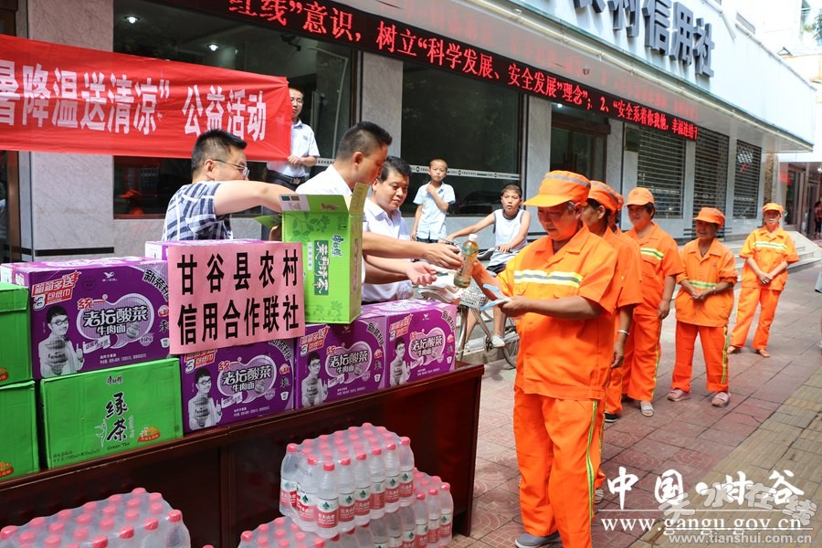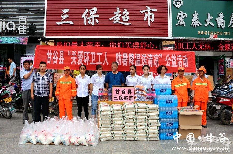 活動中,三保超市、縣農(nóng)村信用合作聯(lián)社、甘肅銀行甘谷支行、中國移動甘谷分公司、中國人壽甘谷支公司、中國電信甘谷分公司、千河源純凈水廠及葉茂花苑、新城國際、金晟名苑等企業(yè)單位紛紛獻出愛心,以捐贈防暑藥品、礦泉水、飲料、水杯、冰糖、方便面、毛巾、手套等不同方式,表達對一線環(huán)衛(wèi)工人的尊重關(guān)愛之情,有效弘揚傳遞了尊重環(huán)衛(wèi)工人、自覺參與維護市容環(huán)境的正能量,讓廣大環(huán)衛(wèi)人員切實感受到了社會各界的拳拳愛心,為他們“涼”了身,“暖”了心。同時,縣環(huán)衛(wèi)所針對持續(xù)高溫天氣,科學(xué)調(diào)配作息時間,避開高溫時段,增加機械化保潔頻率,減輕保潔人員勞動強度,保障環(huán)衛(wèi)工人安心工作、安全度夏。