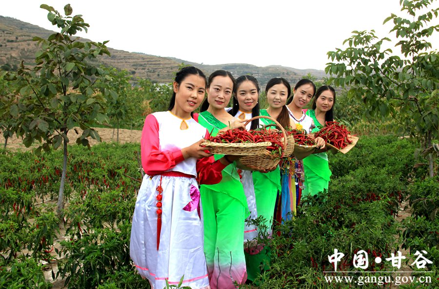 當(dāng)天活動(dòng)最讓群眾激動(dòng)的,還有以辣椒為主題的歌舞演出!陡使壤苯废恪贰ⅰ独苯芳t了》、《辣妹子》等一個(gè)個(gè)精心準(zhǔn)備的節(jié)目,將現(xiàn)場(chǎng)觀眾火辣辣的熱情充分調(diào)動(dòng)起來(lái),叫好聲、鼓掌聲響徹山村。整場(chǎng)文藝演出與辣椒主題緊密相扣,對(duì)于提升甘谷辣椒知名度,打響甘谷辣椒靚麗名片起到積極的推介作用。