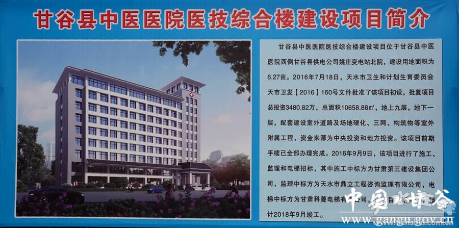 甘谷縣中醫(yī)院成立于1985年,是一所集醫(yī)療、科研、預(yù)防為一體的二級(jí)甲等醫(yī)院。近年來(lái),縣中醫(yī)院發(fā)展迅速,醫(yī)療服務(wù)質(zhì)量穩(wěn)步提升,門(mén)診、住院患者持續(xù)增長(zhǎng),2015年,門(mén)診量達(dá)5萬(wàn)多人次,業(yè)務(wù)收入2100多萬(wàn)元。醫(yī)技綜合樓項(xiàng)目工程按照國(guó)家二級(jí)甲等中醫(yī)醫(yī)院標(biāo)準(zhǔn)設(shè)計(jì)建設(shè),總投資3480萬(wàn)元,總建筑面積近10660平方米,預(yù)計(jì)2018年9月竣工。