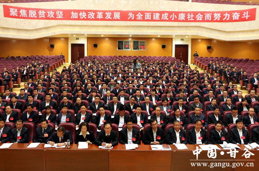 在熱烈的掌聲中,賈忠慧代表中國共產(chǎn)黨甘谷縣第十三屆委員會作了題為《聚焦脫貧攻堅 加快改革發(fā)展 為全面建成小康社會而努力奮斗》的報告。報告共分十部分,分別為縣第十三次黨代會以來全縣工作回顧;今后五年全縣發(fā)展的總體要求和奮斗目標;聚焦精準施策,堅決打贏脫貧攻堅戰(zhàn);堅持項目帶動,全面提升基礎(chǔ)承載能力;優(yōu)化產(chǎn)業(yè)結(jié)構(gòu),努力提高發(fā)展的質(zhì)量和效益;堅持建管并重,統(tǒng)籌推進城鄉(xiāng)一體化進程;深化改革開放,釋放發(fā)展內(nèi)生動力活力;強化共建共享,著力保障改善民生;提升基層治理水平,維護社會大局和諧穩(wěn)定;堅持從嚴管黨治黨,為全面建成小康社會提供堅強保證。本次大會主題是:高舉中國特色社會主義偉大旗幟,以鄧小平理論、“三個代表”重要思想、科學(xué)發(fā)展觀為指導(dǎo),深入貫徹習(xí)近平總書記系列重要講話精神,認真落實創(chuàng)新、協(xié)調(diào)、綠色、開放、共享發(fā)展新理念,動員全縣各級黨組織、廣大黨員和干部群眾,牢記使命,銳意進取,攻堅克難,為早日實現(xiàn)整縣脫貧、與全省、全國一道全面建成小康社會而努力奮斗。