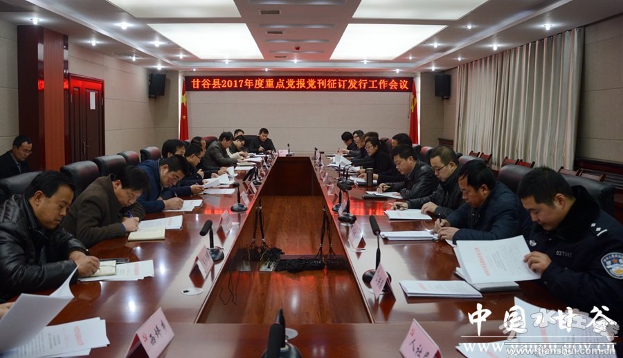 11月24日,甘谷縣召開(kāi)2017年度重點(diǎn)黨報(bào)黨刊征訂發(fā)行工作會(huì)議,傳達(dá)貫徹省市重點(diǎn)黨報(bào)黨刊發(fā)行工作會(huì)議精神,安排部署全縣重點(diǎn)黨報(bào)黨刊征訂發(fā)行工作。縣委常委、宣傳部長(zhǎng)張慶元出席會(huì)議;各鄉(xiāng)鎮(zhèn)、縣直及駐縣部分企事業(yè)單位負(fù)責(zé)人共計(jì)30多人參加會(huì)議。
