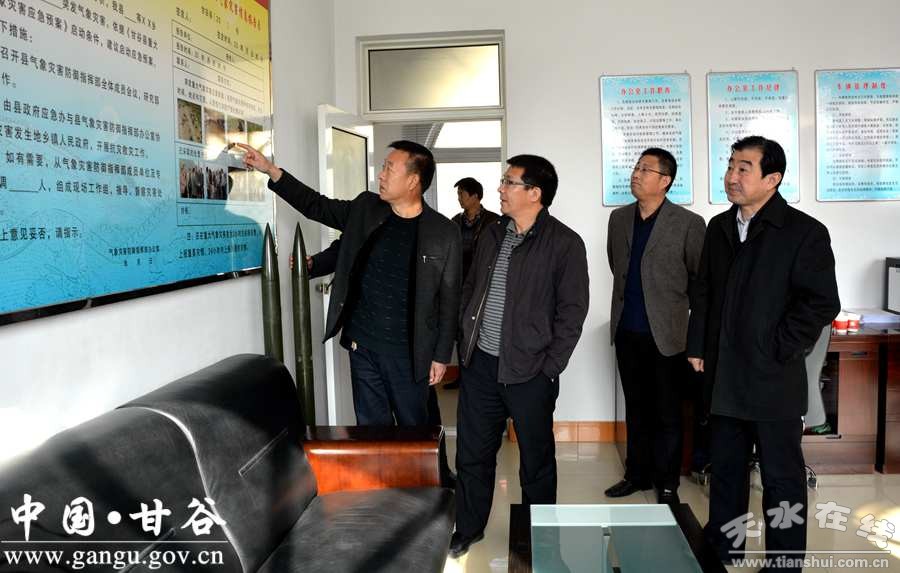 12月15日,甘肅省氣象局副局長楊興國帶領(lǐng)調(diào)研組深入甘谷縣調(diào)研氣象工作。天水市副市長霍衛(wèi)平,市氣象局局長賈效忠,甘谷縣副縣長楊宏陪同。