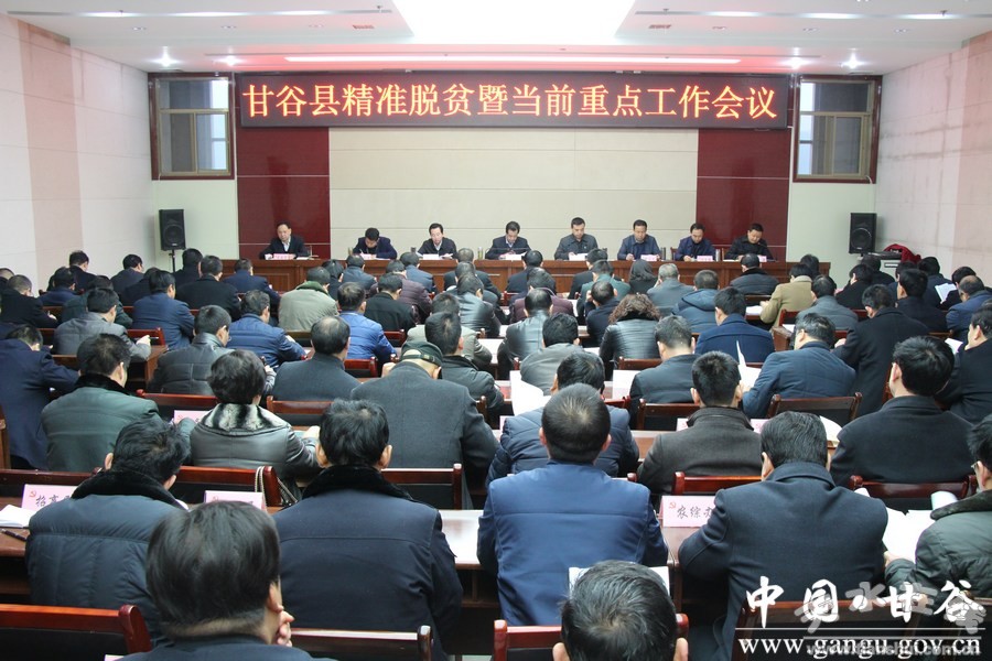 1月6日,甘谷縣召開精準(zhǔn)脫貧暨當(dāng)前重點(diǎn)工作會議,傳達(dá)省委農(nóng)村工作會議和全省扶貧開發(fā)工作會議精神,分析總結(jié)全縣精準(zhǔn)脫貧工作,安排部署當(dāng)前重點(diǎn)工作任務(wù)?h委副書記、縣長申君明,縣委副書記任佩光等縣四大組織領(lǐng)導(dǎo)出席會議;各鄉(xiāng)鎮(zhèn)黨委書記、鄉(xiāng)鎮(zhèn)長、扶貧工作站站長、縣直及駐縣各部門單位負(fù)責(zé)人共計140余人參加會議。會議由縣委常委、常務(wù)副縣長孟曉龍主持。