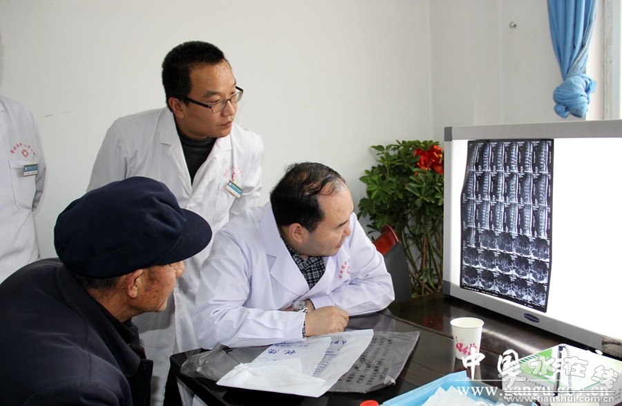 義診活動(dòng)中,謝興文博士帶領(lǐng)省中醫(yī)院醫(yī)療專(zhuān)家在磐安中心衛(wèi)生院住院部進(jìn)行了三級(jí)查房,并對(duì)個(gè)別疑難病例進(jìn)行了詳細(xì)病案分析;同時(shí),圍繞危重疑難病例病情評(píng)估、診療方案確定、潛在并發(fā)癥預(yù)防等,現(xiàn)場(chǎng)指導(dǎo)磐安衛(wèi)生院醫(yī)務(wù)人員開(kāi)展診療。當(dāng)天累計(jì)接待就診咨詢(xún)?nèi)罕?00多人次,開(kāi)出處方260多張,小針刀治療200多人次,發(fā)送健康教育資料300余份,受到了當(dāng)?shù)厝罕姾歪t(yī)務(wù)人員的普遍贊譽(yù)。