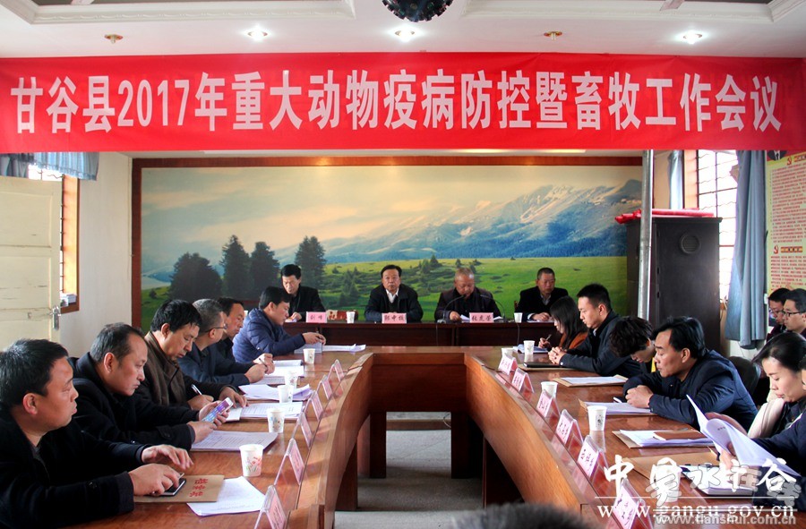 3月3日,甘谷縣召開2017年重大動(dòng)物疫病防控暨畜牧工作會(huì)議,回顧總結(jié)去年畜牧獸醫(yī)工作,安排部署2017年重大動(dòng)物疫病防控暨畜牧工作任務(wù)。副縣長(zhǎng)郭中校出席會(huì)議;縣政府辦、畜牧局等部門單位負(fù)責(zé)人,各鄉(xiāng)鎮(zhèn)分管領(lǐng)導(dǎo)、畜牧站站長(zhǎng)共計(jì)50多人參加會(huì)議。