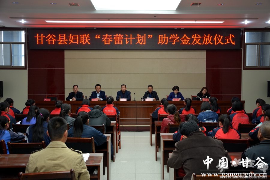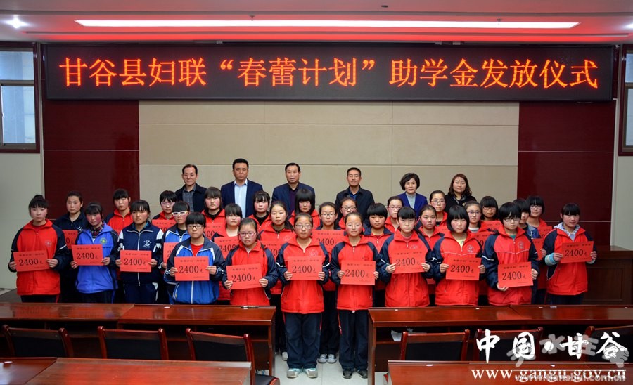 3月3日,在第107個“三八”國際勞動婦女節(jié)即將來臨之際,甘谷縣婦聯(lián)舉行“春蕾計劃”助學(xué)金發(fā)放儀式?h人大常委會副主任王金生,副縣長牛武軍,縣政協(xié)副主席田小龍出席儀式;縣婦聯(lián)、縣教體局有關(guān)負(fù)責(zé)人,受助學(xué)生及家長參加儀式。