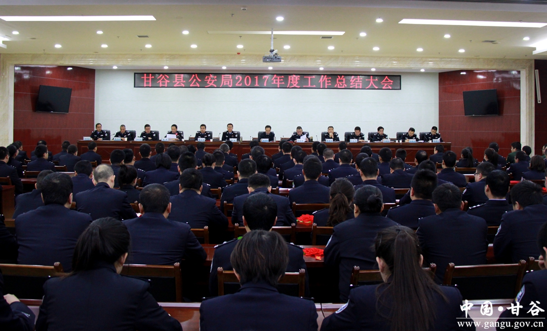 1月4日,甘谷縣公安局召開2017年度工作總結大會,全面回顧總結2017年全縣公安工作,表彰獎勵2017年度先進集體和先進個人,安排部署2018年重點工作?h委常委、政法委書記馮全敬出席會議并講話。公安局黨委班子全體成員,全體民警、文職(除值班執(zhí)勤人員外)和協(xié)警代表參加會議。