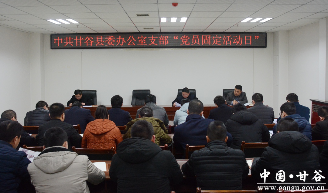 1月5日,甘谷縣委辦公室黨支部開展第1月份 “黨員固定活動(dòng)日”活動(dòng)。會(huì)上,支部黨員集體學(xué)習(xí)了習(xí)近平總書記在黨的十九屆一中全會(huì)上的講話及習(xí)近平總書記進(jìn)一步糾正“四風(fēng)”、加強(qiáng)作風(fēng)建設(shè)重要批示的通知,安排部署了2018年工作。