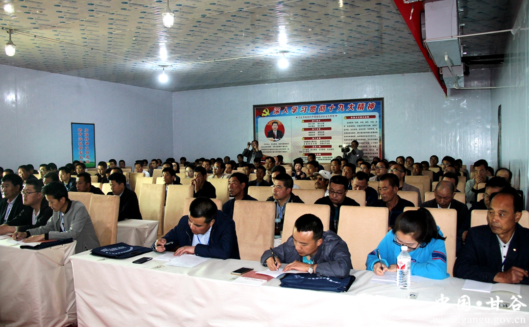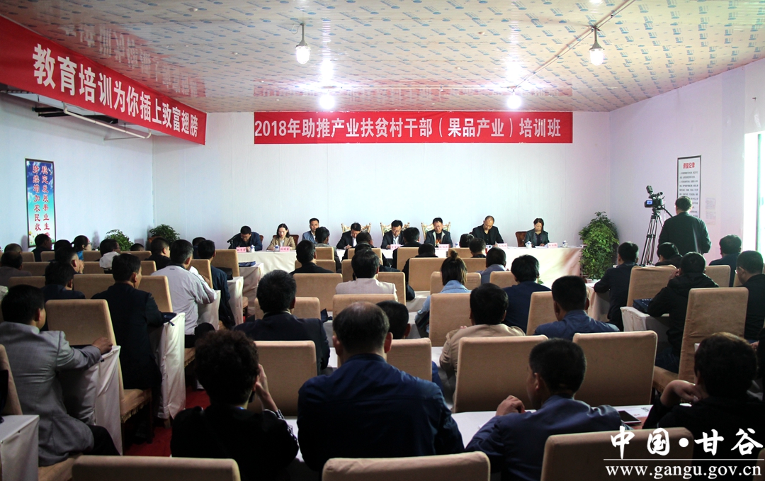 5月4日,天水市助推產(chǎn)業(yè)扶貧村干部(果品產(chǎn)業(yè))第二期培訓班甘谷縣開班?h委副書記宋學勤出席開班儀式并講話;縣委組織部、縣農(nóng)業(yè)局、果業(yè)局、畜牧局等相關(guān)部門負責人參加開班儀式。甘谷縣、武山縣深度貧困村村主任、村支書、村第一書記和幫扶隊隊長150多人參加培訓。
