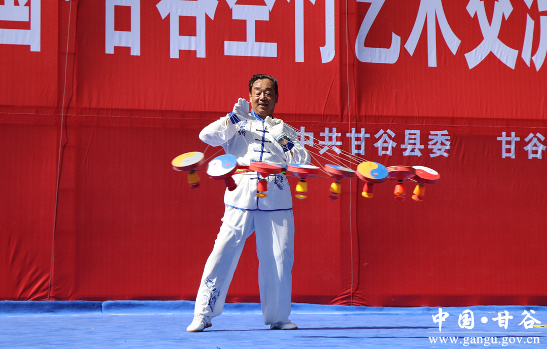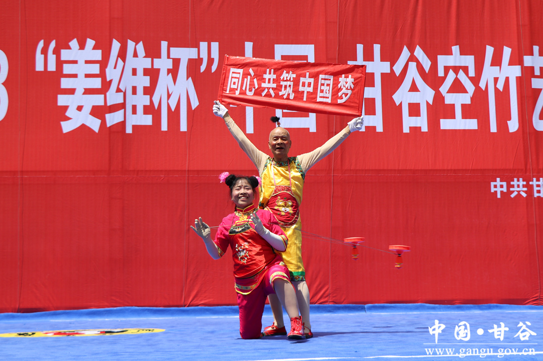 五月的甘谷,月季飄香,生機盎然,激情涌動。5月19日,2018“姜維杯”中國·甘谷空竹藝術(shù)交流大會在尚武苑盛大開幕?h委常委、宣傳部長張慶元,縣人大常委會副主任王金生,副縣長牛武軍,縣政協(xié)副主席馬清平出席開幕儀式。來自青海、寧夏、陜西、甘肅4省區(qū)12個地區(qū)的120名空竹藝術(shù)愛好者齊聚甘谷,切磋技藝,交流經(jīng)驗,展示空竹藝術(shù)的獨特魅力。