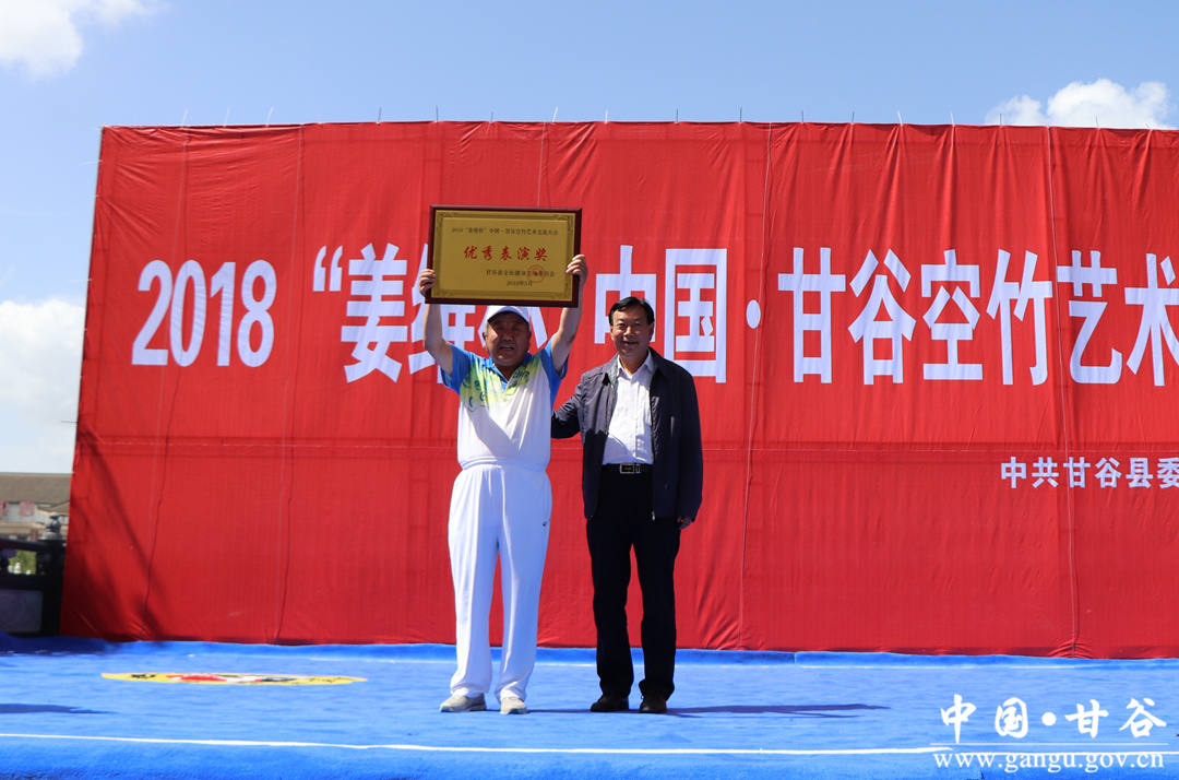 交流大會結(jié)束后,縣領(lǐng)導為優(yōu)秀表演隊頒發(fā)了榮譽證書和獎牌;接受了表演隊回贈的錦旗和書畫。