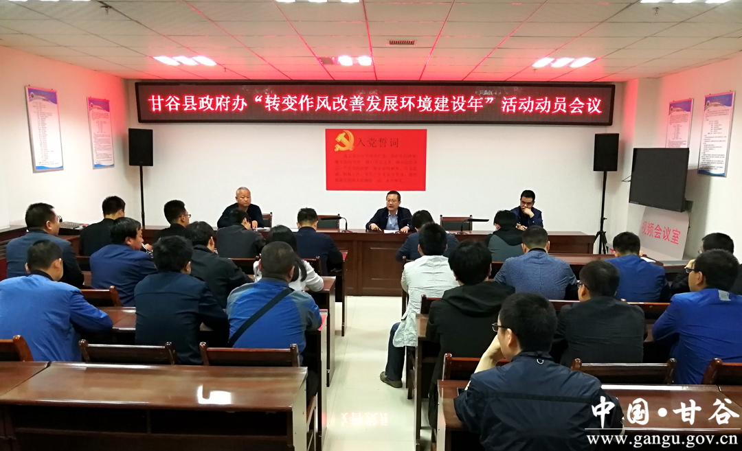 5月21日,甘谷縣政府辦公室召開(kāi)“轉(zhuǎn)變作風(fēng)改善發(fā)展環(huán)境建設(shè)年”活動(dòng)動(dòng)員會(huì)議,傳達(dá)了省市縣“轉(zhuǎn)變作風(fēng)改善發(fā)展環(huán)境建設(shè)年”活動(dòng)動(dòng)員大會(huì)精神,貫徹落實(shí)黨中央和省市縣委關(guān)于作風(fēng)建設(shè)的新部署新要求,安排部署政府辦公室“轉(zhuǎn)變作風(fēng)改善發(fā)展環(huán)境建設(shè)年”活動(dòng)。