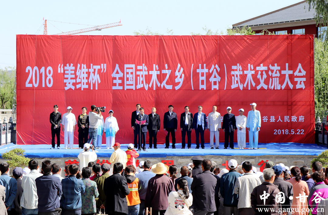 5月22日,2018“姜維杯”全國武術(shù)之鄉(xiāng)(甘谷)武術(shù)交流大會(huì)在大像山公園尚武苑開幕。天水市體育局副局長(zhǎng)李愛平,縣委副書記、縣長(zhǎng)吳健,縣委常委、宣傳部長(zhǎng)張慶元,縣人大常委會(huì)副主任王金生,副縣長(zhǎng)牛武軍,縣政協(xié)副主席馬清平出席開幕儀式。來自內(nèi)蒙古、四川、山西、青海、寧夏、陜西、甘肅7省區(qū)12支代表隊(duì)140多名武術(shù)名家和運(yùn)動(dòng)員齊聚甘谷,共同切磋武術(shù)技藝,交流武術(shù)文化。