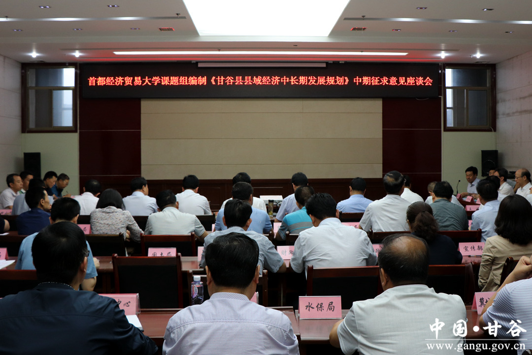 7月10日,首都經(jīng)濟貿(mào)易大學課題組編制《甘谷縣域經(jīng)濟中長期發(fā)展規(guī)劃》中期征求意見座談會召開。首都經(jīng)濟貿(mào)易大學副校長、中國區(qū)域科學協(xié)會會長楊開忠及課題組成員,甘谷縣委書記申君明,縣人大常委會主任令建民,縣政協(xié)主席馬驥等縣四大組織領導出席會議;縣人大、縣政協(xié)分管領導,縣政府全體在家領導,以及縣直重點部門主要負責人參加會議。