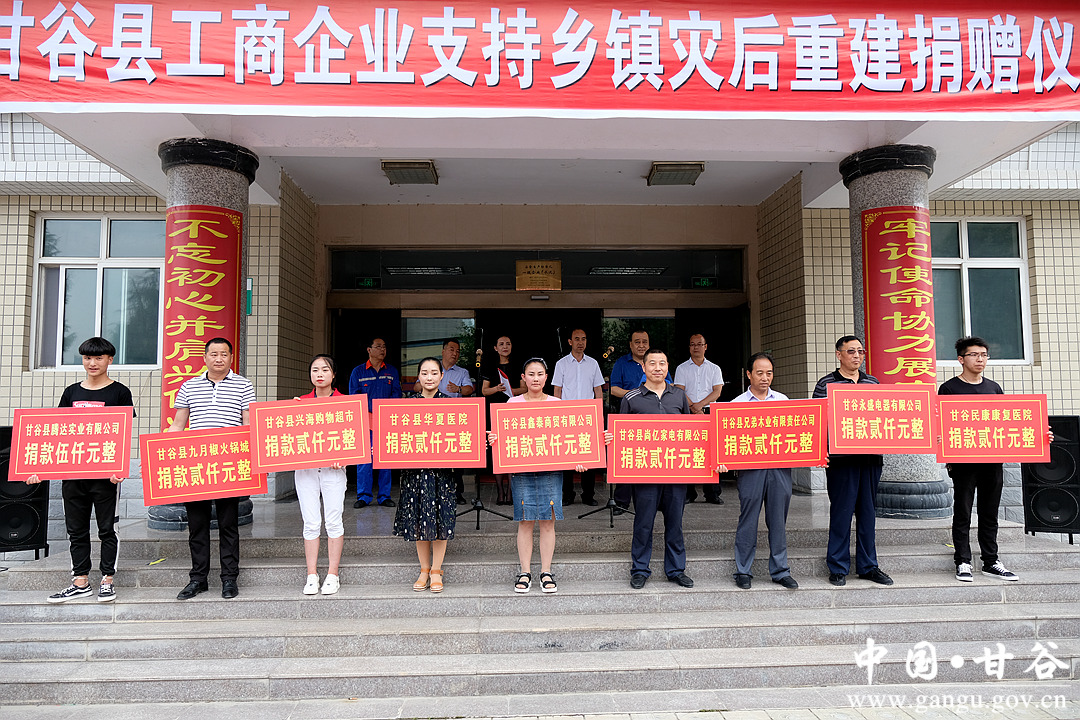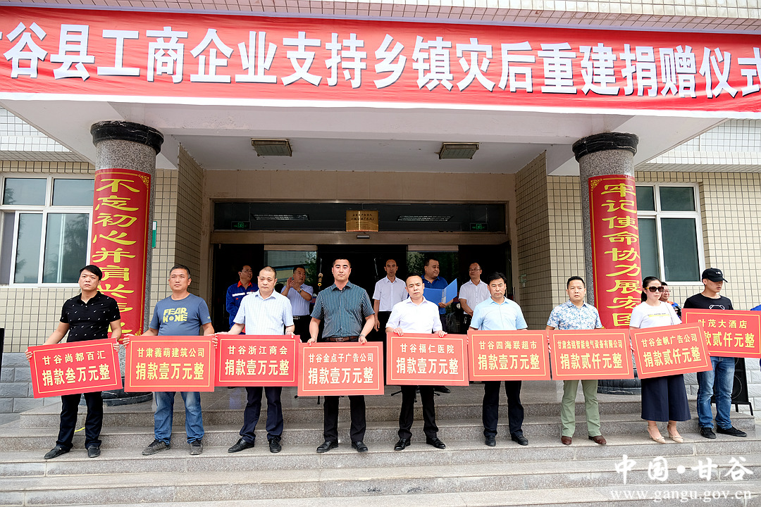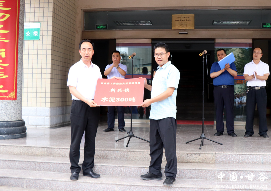 洪水無情,企業(yè)有情。7月19日,甘谷縣49家工商企業(yè)現(xiàn)場(chǎng)向我縣受災(zāi)較重鄉(xiāng)鎮(zhèn)捐贈(zèng)37.6萬元,用于購(gòu)買1000噸水泥,幫助受災(zāi)群眾渡過難關(guān),助力家鄉(xiāng)災(zāi)后重建工作。