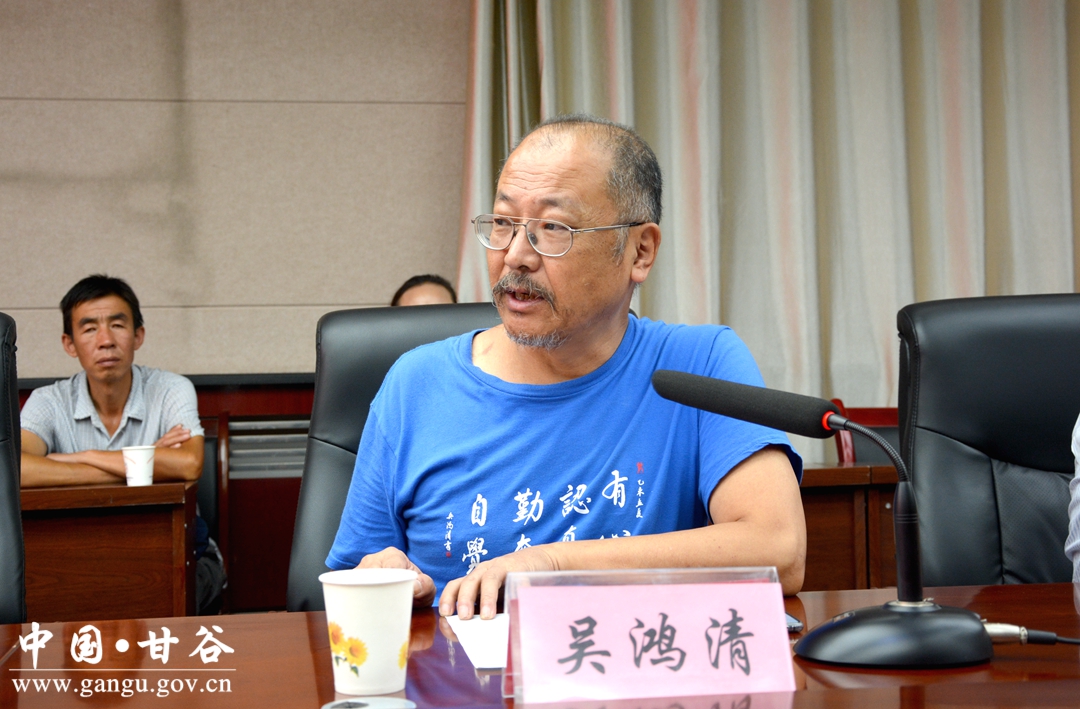 (中央廣播電視大學文法學院教授、天水市伏羲贍老助學基金會理事長吳鴻清講話)