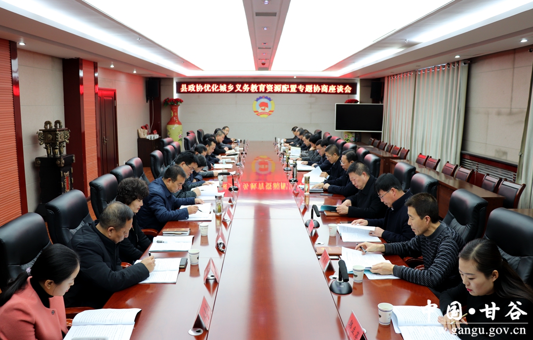 12月7日,甘谷縣政協(xié)召開優(yōu)化義務(wù)教育資源配置專題協(xié)商座談會?h政協(xié)主席馬驥,副縣長牛武軍,縣政協(xié)副主席董成斌、陳旭、鄭建子出席座談會;縣政協(xié)各委辦主任,參加專題協(xié)商前期調(diào)研的各位委員,縣教體、發(fā)改、國土、建設(shè)、人社、財政、規(guī)劃、編辦等部門負責(zé)人參加座談會。