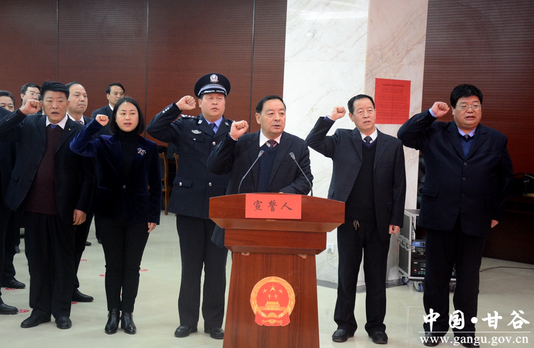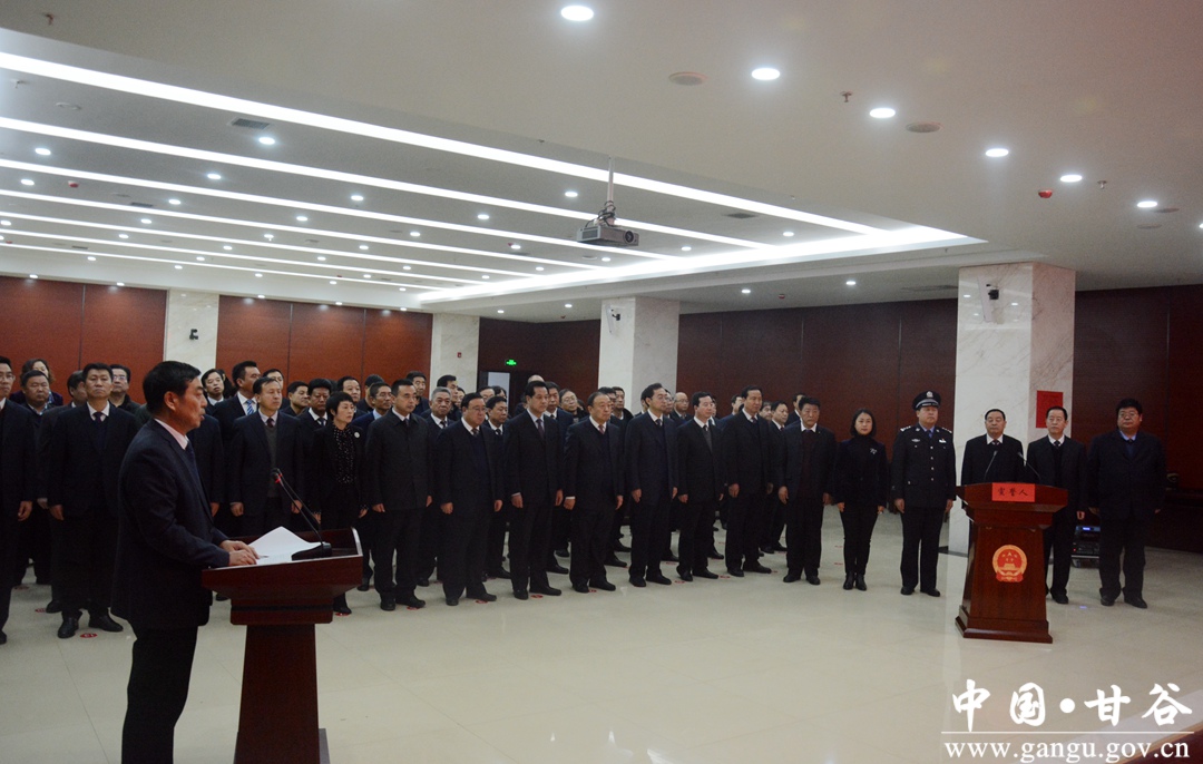 1月11日下午,甘谷縣第十七屆人民代表大會(huì)第四次會(huì)議閉幕后,舉行了憲法宣誓儀式。新當(dāng)選的縣人大常委會(huì)副主任、新任命的縣人民政府副縣長、縣人大常委會(huì)辦公室主任、縣退役軍人事務(wù)局局長一同向憲法莊嚴(yán)宣誓。
