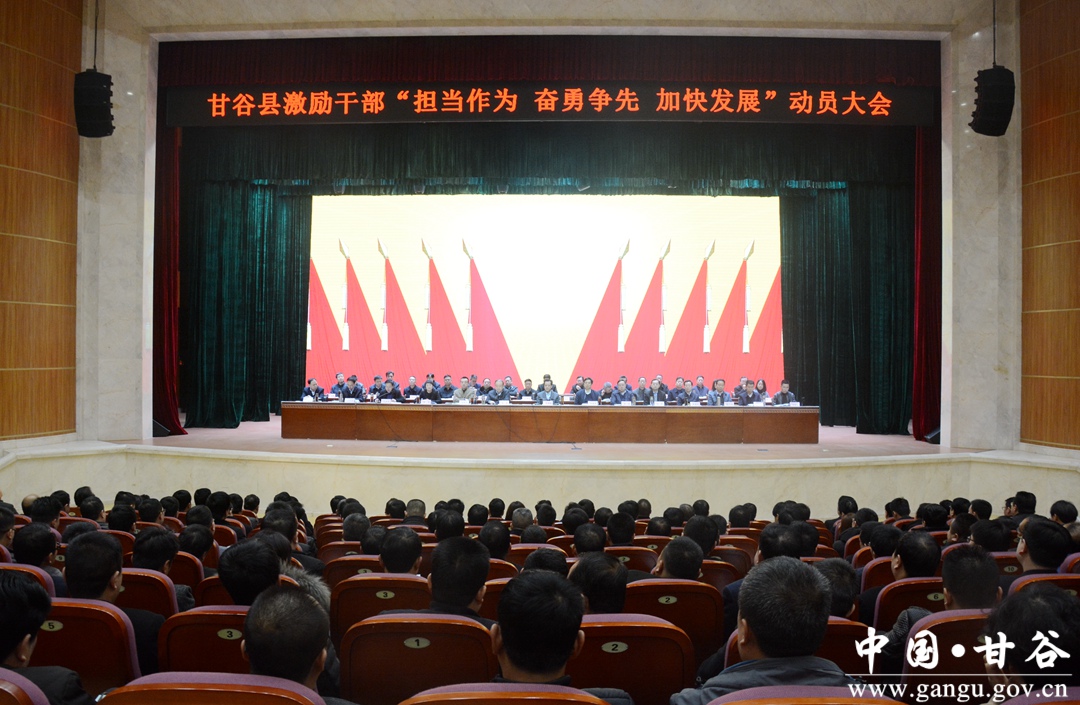 3月2日,甘谷縣召開激勵干部“擔(dān)當(dāng)作為 奮勇爭先 加快發(fā)展”動員大會,宣布黨政機構(gòu)改革班子調(diào)整配備情況,并對人事配備的原則作通報說明,動員和激勵全縣各級各部門和廣大黨員干部,不忘初心,牢記使命,進一步轉(zhuǎn)變作風(fēng),擔(dān)當(dāng)作為,苦干實干,狠抓落實,吹響奮勇爭先進軍號,展現(xiàn)加快發(fā)展新作為,奮力推動全縣經(jīng)濟社會高質(zhì)量發(fā)展。