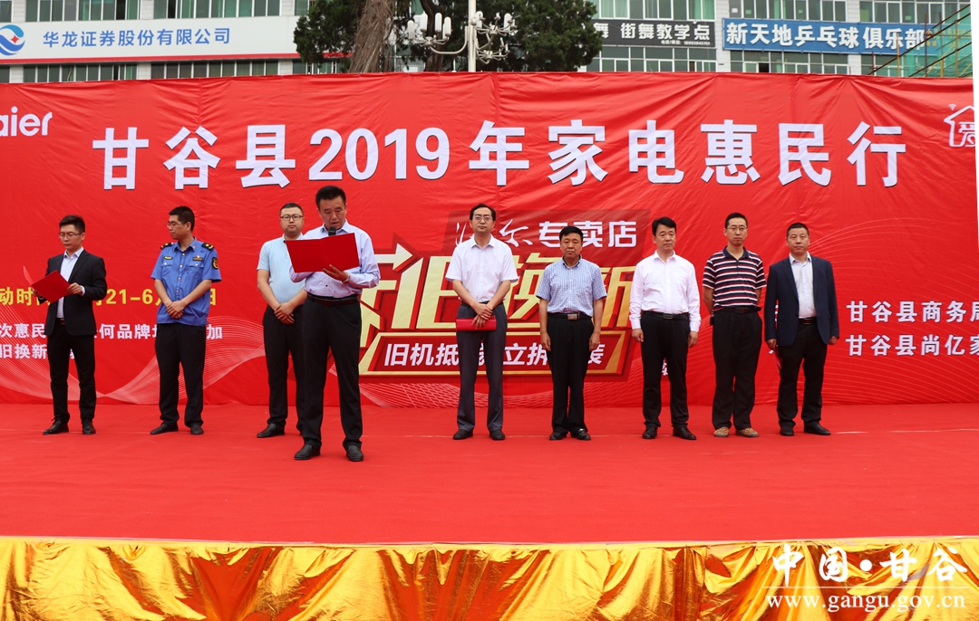 6月21日,甘谷縣2019年“家電惠民行”宣傳促銷(xiāo)活動(dòng)啟動(dòng)儀式在大什字廣場(chǎng)舉行。縣委副書(shū)記馮偉、縣人大常委會(huì)副主任劉仰賢出席啟動(dòng)儀式;縣政協(xié)副主席田小龍主持啟動(dòng)儀式?h委宣傳部、縣商務(wù)局、縣市場(chǎng)監(jiān)督管理局、綜合行政執(zhí)法局、海爾集團(tuán)蘭州分公司、甘谷縣尚億海爾專(zhuān)賣(mài)店等部門(mén)和企業(yè)負(fù)責(zé)人參加啟動(dòng)儀式。