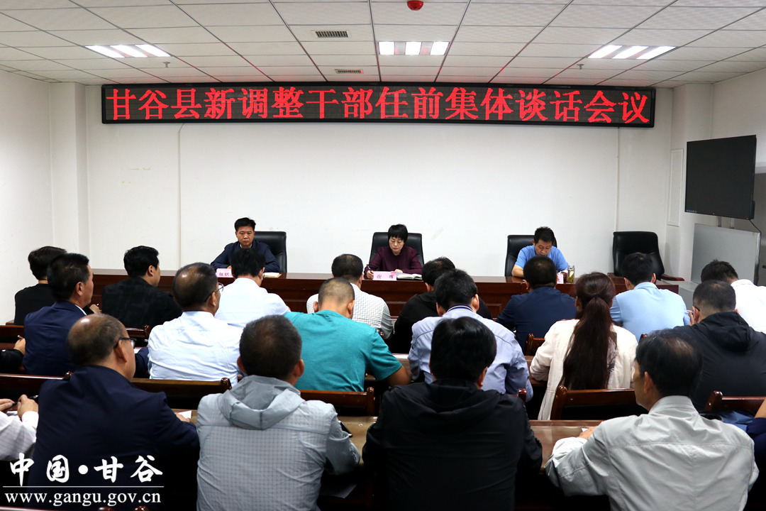 8月22日,甘谷縣召開新調(diào)整干部任前集體談話會(huì)議,縣委常委、紀(jì)委書記、監(jiān)委主任謝輝主持會(huì)議,縣委常委、組織部長(zhǎng)葛彥迪出席會(huì)議。