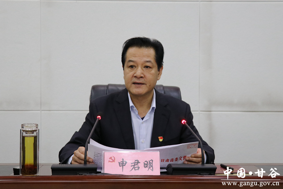 學(xué)習(xí)會(huì)上,縣委書記申君明領(lǐng)學(xué)了習(xí)近平總書記2013年2月視察甘肅重要講話和“八個(gè)著力”重要指示精神、參加十三屆全國(guó)人大二次會(huì)議甘肅代表團(tuán)審議時(shí)的重要講話、2019年8月視察甘肅重要講話;縣委副書記馮偉領(lǐng)學(xué)習(xí)近平總書記在中央黨校(國(guó)家行政學(xué)院)中青年干部培訓(xùn)班開班式上的重要講話。