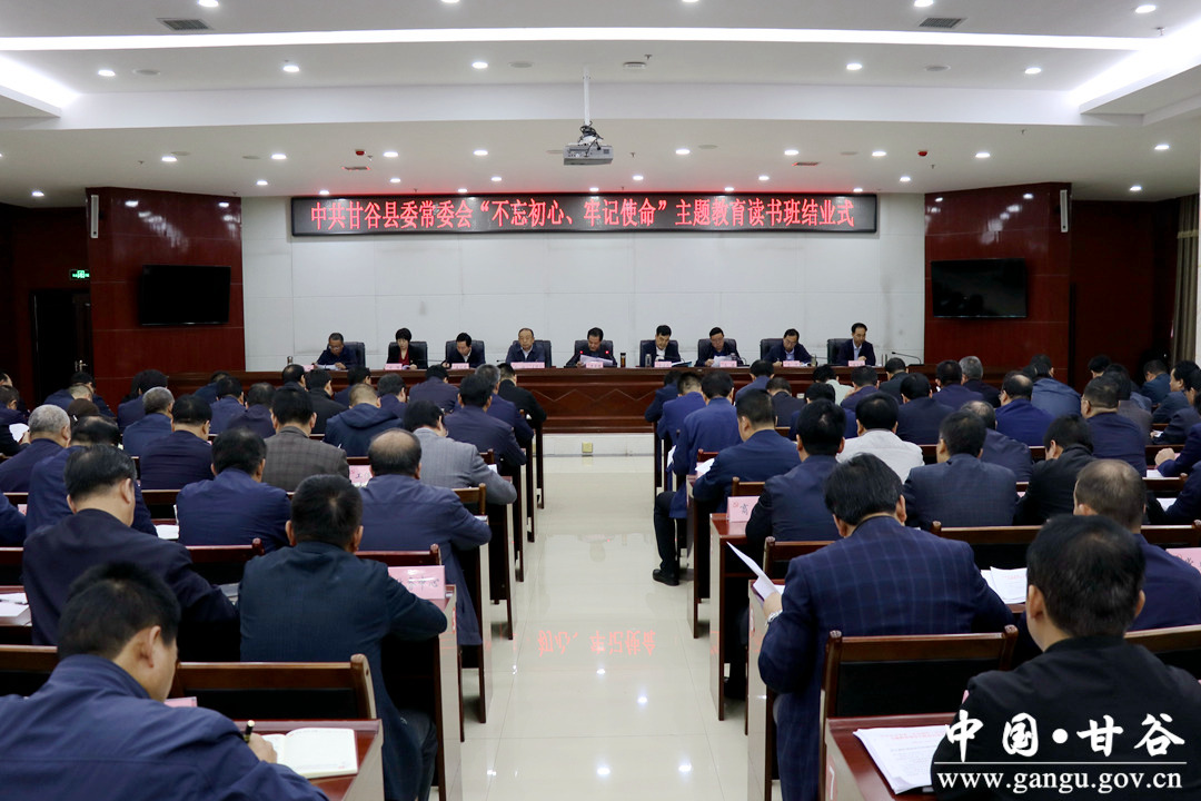 9月20日,中共甘谷縣委常委會舉行“不忘初心、牢記使命”主題教育讀書班結(jié)業(yè)式?h委書記申君明出席結(jié)業(yè)式并講話;縣委副書記、縣長吳健主持結(jié)業(yè)式;縣人大常委會主任令建民、縣政協(xié)主席馬驥及縣四大組織全體領(lǐng)導(dǎo),縣法院院長、縣檢察院檢察長、縣紀(jì)委、縣委有關(guān)部門負(fù)責(zé)人,縣直各部門、各單位主要負(fù)責(zé)人,各鄉(xiāng)鎮(zhèn)黨委書記,縣委主題教育領(lǐng)導(dǎo)小組辦公室主任、副主任,各工作組、指導(dǎo)組組長,共計150余人參加結(jié)業(yè)式。