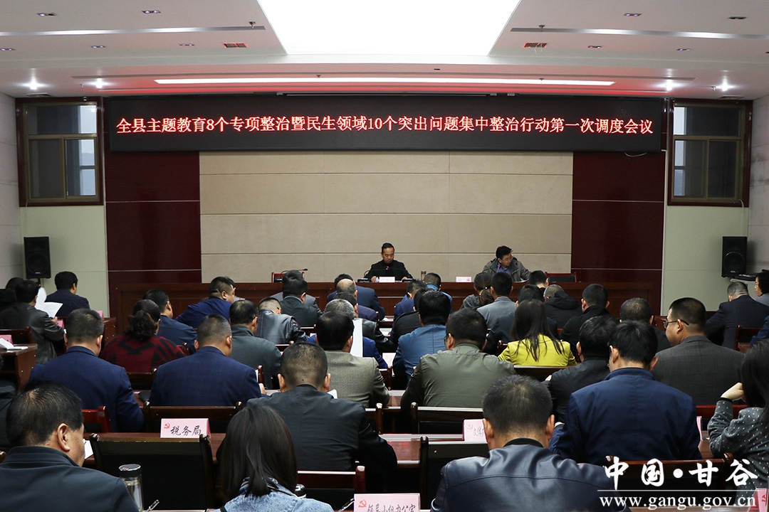 10月21日,甘谷縣召開“不忘初心、牢記使命”主題教育8個(gè)專項(xiàng)整治暨民生領(lǐng)域10個(gè)突出問(wèn)題集中整治行動(dòng)第一次調(diào)度會(huì)議。會(huì)議傳達(dá)了全市“不忘初心、牢記使命”主題教育開展民生領(lǐng)域突出問(wèn)題集中整治行動(dòng)專題部署會(huì)議精神,宣讀了《中共甘谷縣委“不忘初心、牢記使命”主題教育領(lǐng)導(dǎo)小組8個(gè)專項(xiàng)整治實(shí)施方案的通知》和《中共甘谷縣委“不忘初心、牢記使命”主題教育領(lǐng)導(dǎo)小組關(guān)于開展民生領(lǐng)域突出問(wèn)題集中整治行動(dòng)的通知》。