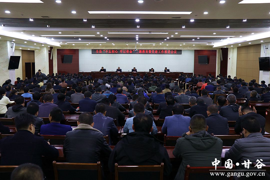 10月24日,甘谷縣召開“不忘初心、牢記使命”主題教育暨黨建工作推進會議。縣委書記申君明出席會議并講話;縣委副書記孟曉龍主持會議;縣委常委、組織部長葛彥迪安排部署全縣“不忘初心、牢記使命”主題教育和基層黨建工作;縣委副書記馮偉,縣委常委、大像山鎮(zhèn)黨委書記張俊義出席會議;各鄉(xiāng)鎮(zhèn)黨委書記、副書記、黨建辦主任,縣直各單位黨組織負責人、黨務(wù)干部,各貧困村黨組織第一書記、駐村幫扶工作隊隊長共計370余人參加會議。