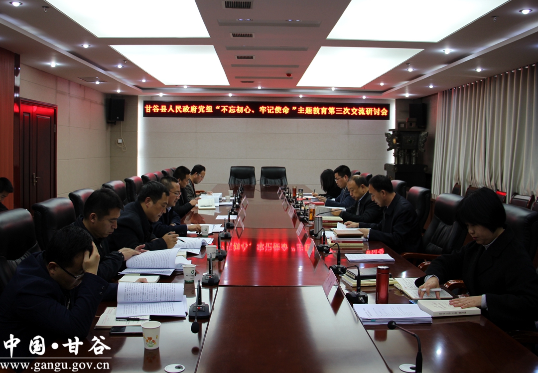 11月20日,甘谷縣委副書記、縣政府黨組書記、縣長吳健主持召開甘谷縣政府黨組“不忘初心、牢記使命”主題教育第三次交流研討會。縣政府黨組副書記馮全敬,縣政府黨組成員朱德勇、高麗、李萍、劉強(qiáng)參加會議并逐一作了交流發(fā)言。