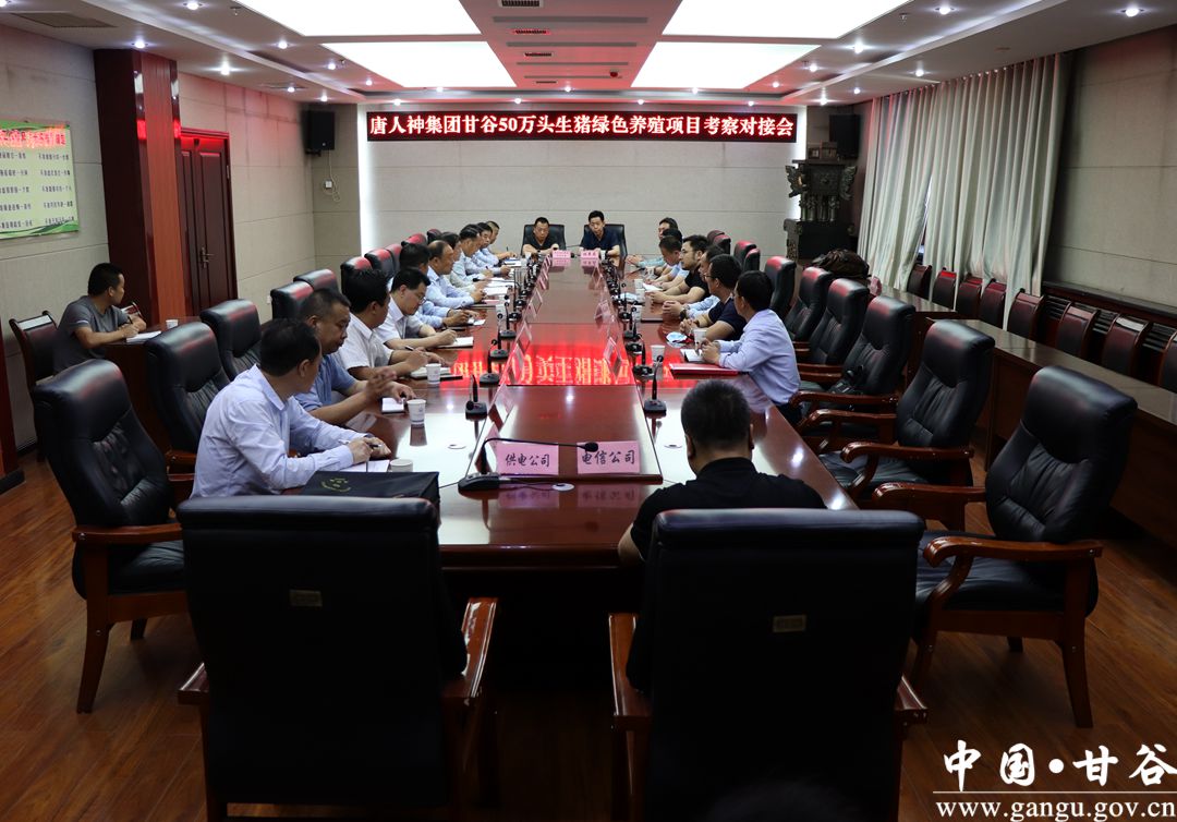 6月18日,甘谷縣召開唐人神集團(tuán)50萬頭生豬綠色養(yǎng)殖項(xiàng)目考察對(duì)接會(huì),縣委副書記、縣長(zhǎng)吳健和唐人神集團(tuán)總裁陶業(yè)就50萬頭生豬綠色養(yǎng)殖項(xiàng)目建設(shè)情況進(jìn)行深入交流。副縣長(zhǎng)杜興及相關(guān)鄉(xiāng)鎮(zhèn)、部門負(fù)責(zé)人參加會(huì)議。