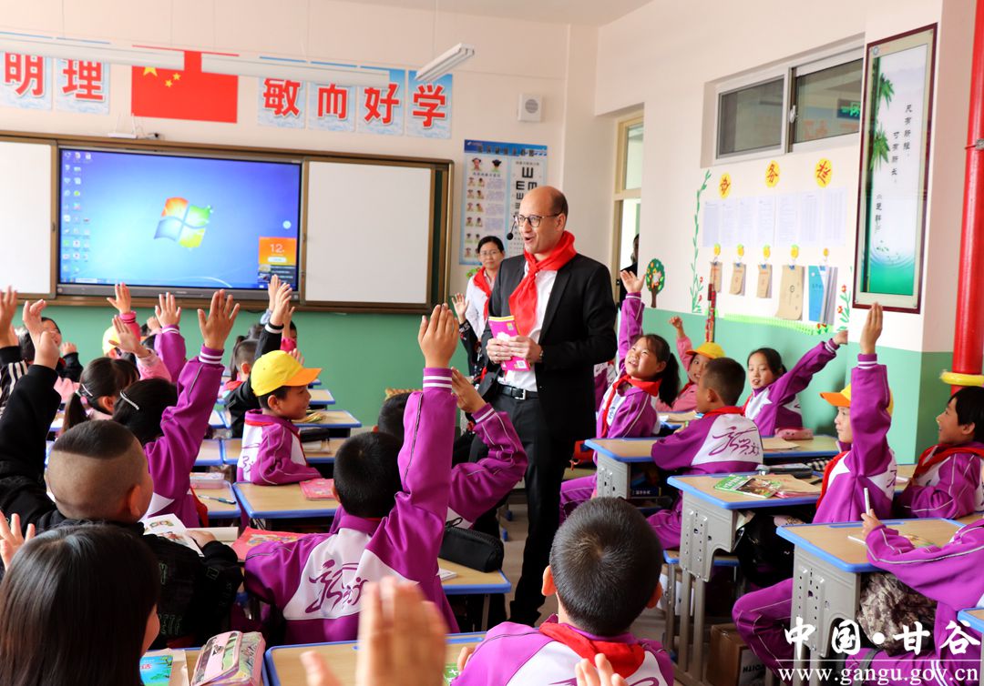 華偉廷一行先后赴新興小學(xué)、茍家峴小學(xué)等地,向?qū)W校捐贈(zèng)了課桌椅和學(xué)習(xí)用品,并且為孩子們上了一堂生動(dòng)有趣的英語課,鼓勵(lì)他們要好好學(xué)習(xí),用智慧和勤勞創(chuàng)造出自己美好的未來。