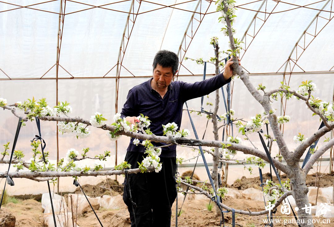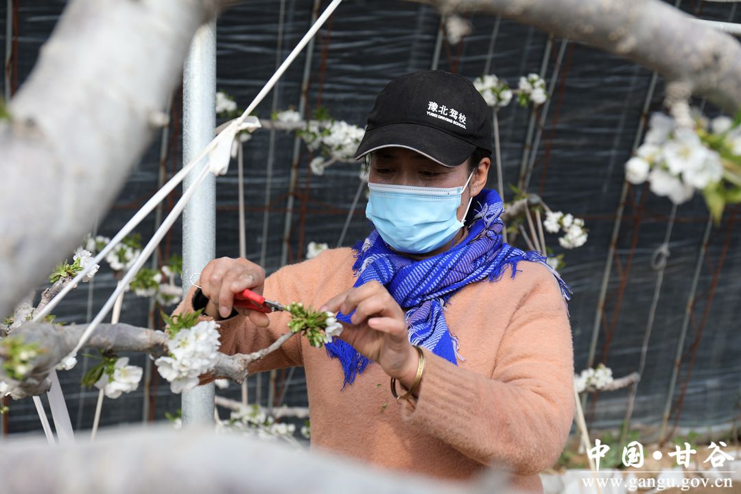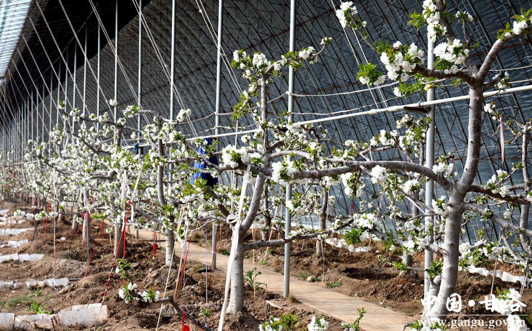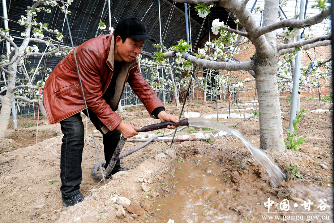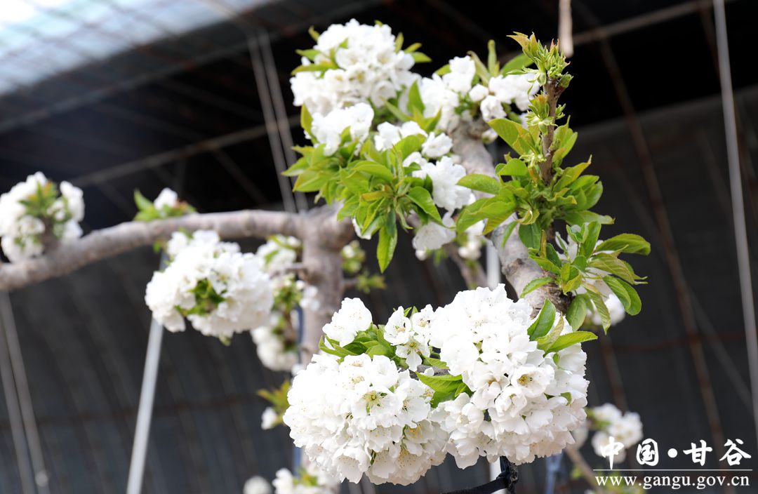 1月19日,雖然正值寒冬時(shí)節(jié),而在安遠(yuǎn)鎮(zhèn)鞏川村設(shè)施櫻桃示范園區(qū)大棚內(nèi),櫻桃花競(jìng)相綻放,一簇簇潔白的花朵掛滿枝頭,果農(nóng)正忙著給櫻桃樹(shù)疏花澆水,以保證果實(shí)生長(zhǎng)發(fā)育正常,確保大棚櫻桃豐產(chǎn)豐收,大棚里一派春意盎然的景象。
