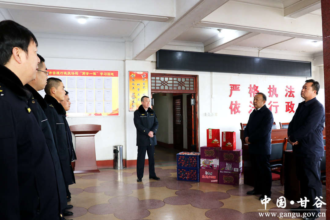 2月9日,甘谷縣委副書記、縣長吳健先后來到綜合執(zhí)法局、電力公司、供熱公司、自來水公司開展節(jié)前慰問,向奮斗在一線的工作人員,送上節(jié)日的問候和親切的祝福?h委常委、副縣長王明一同慰問。
