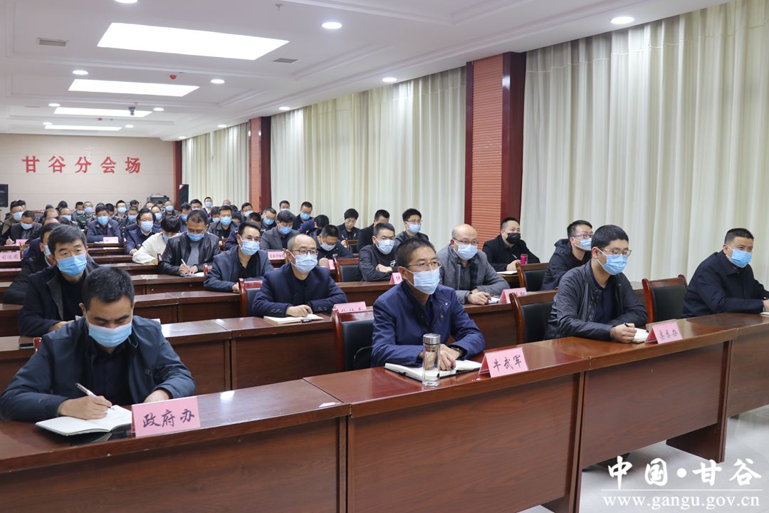 副縣長牛武軍及縣直有關(guān)部門負(fù)責(zé)人在甘谷分會(huì)場收聽收看會(huì)議。