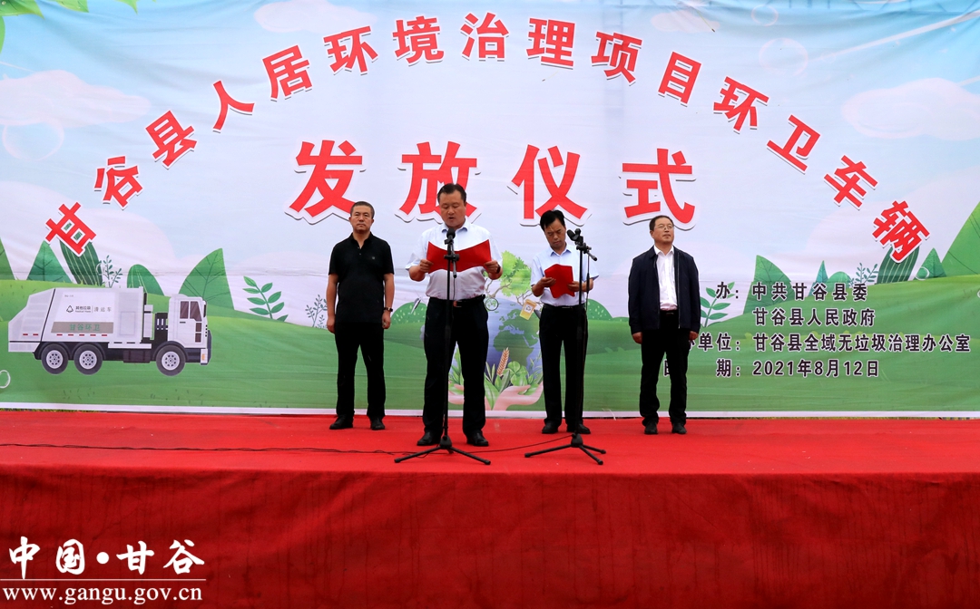 為貫徹落實習(xí)近平總書記重要講話和指示精神,全面實施鄉(xiāng)村振興戰(zhàn)略,健全完善生活垃圾收運體系,扎實推進農(nóng)村人居環(huán)境整治的重要舉措。8月12日,甘谷縣舉行人居環(huán)境治理項目環(huán)衛(wèi)車輛發(fā)放儀式?h委常委、副縣長王明出席發(fā)放儀式并講話,住建局、園林所、環(huán)衛(wèi)所和15個鄉(xiāng)鎮(zhèn)負(fù)責(zé)同志共計200余人參加發(fā)放儀式。