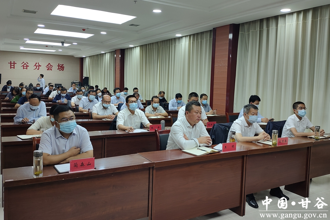 縣委常委、副縣長王明、張秉春、藺森山,副縣長牛武軍、張濤、范慧、龐新志在甘谷分會場收聽收看會議。